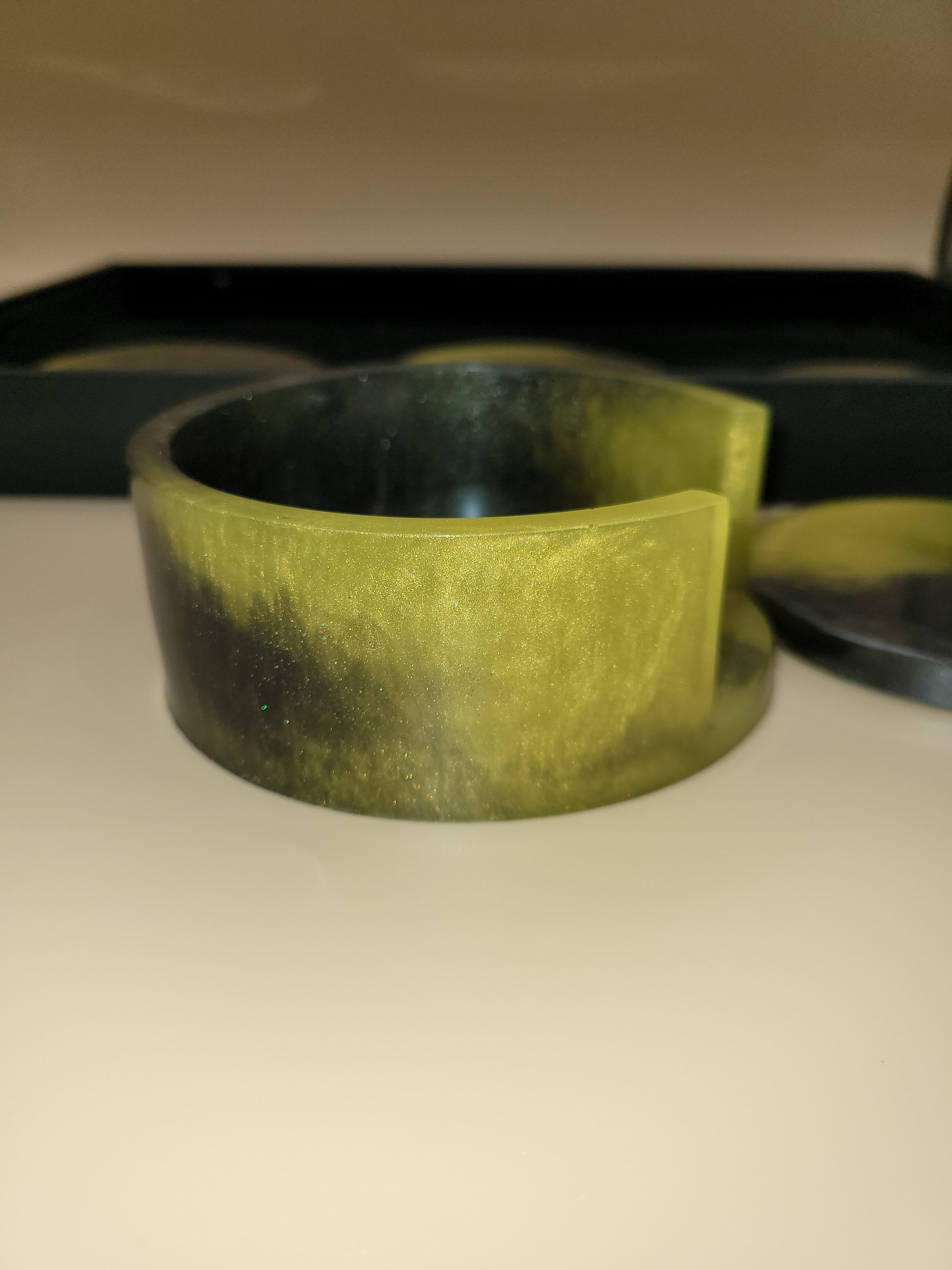 Black and Yellow Handmade Resin Coaster Set with Holder