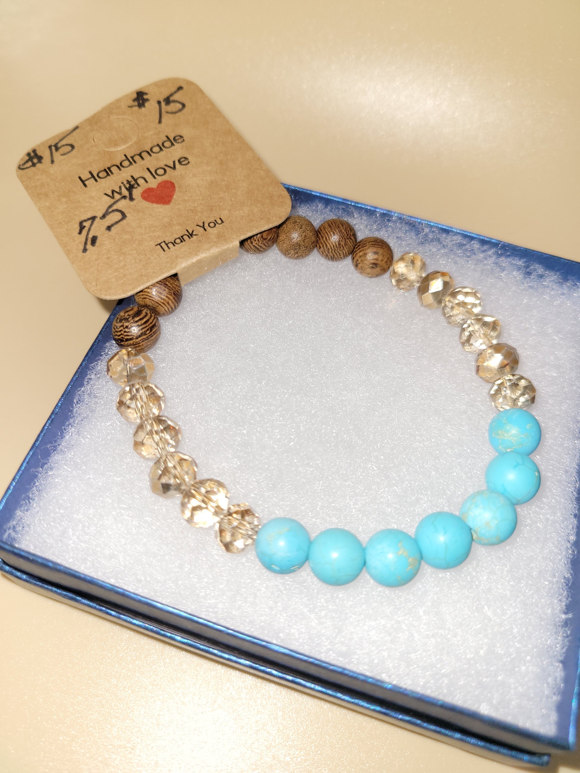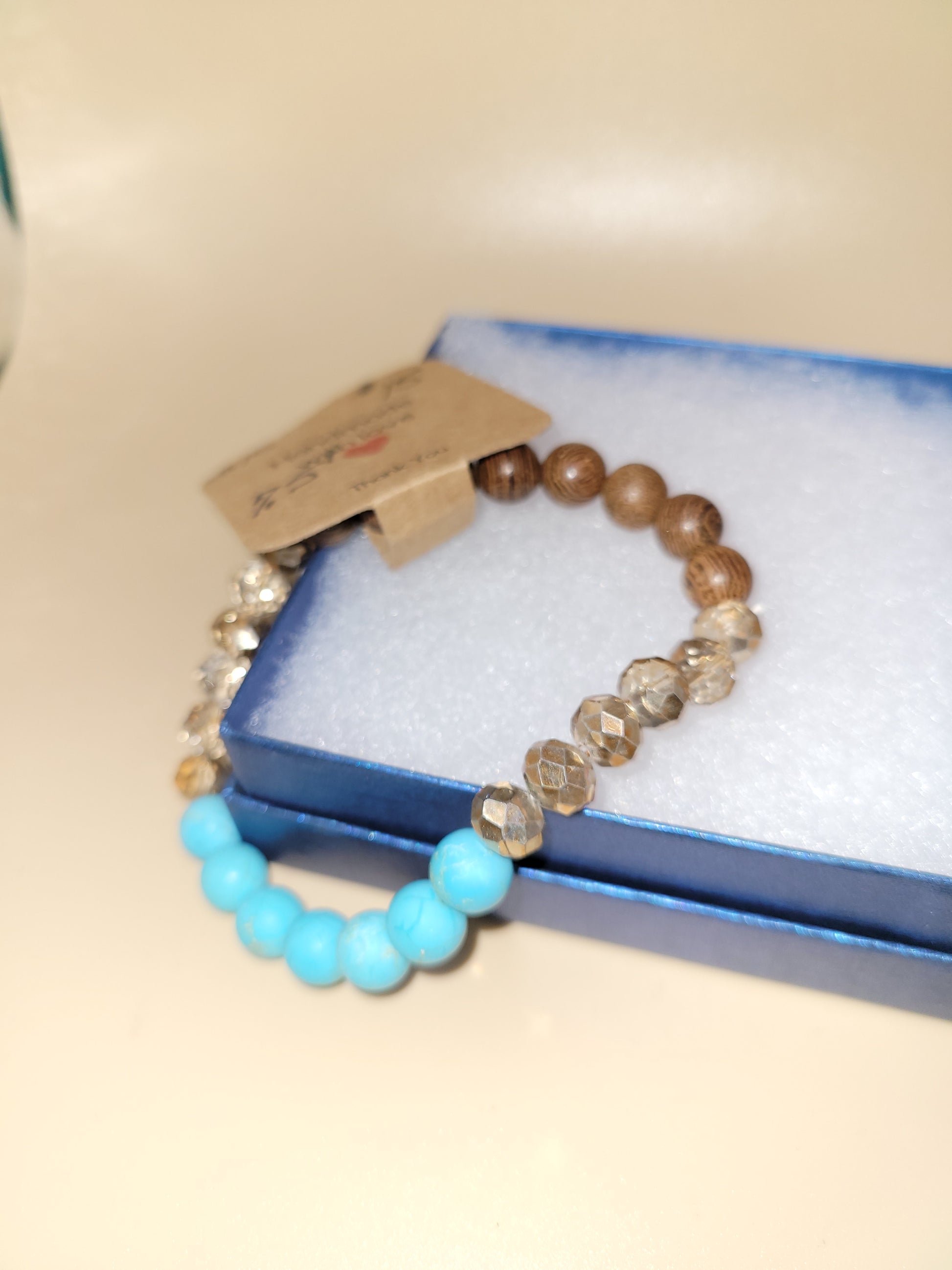 Uniquely Designed hand crafted elastic blue and brown beaded bracelet