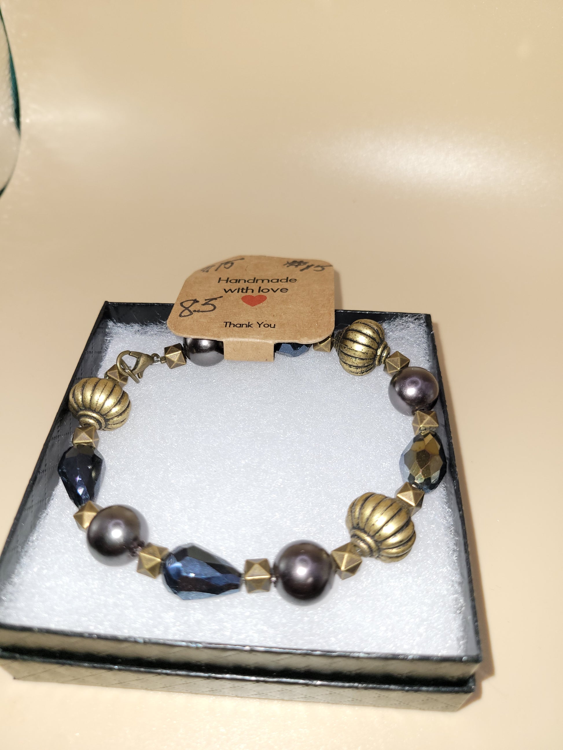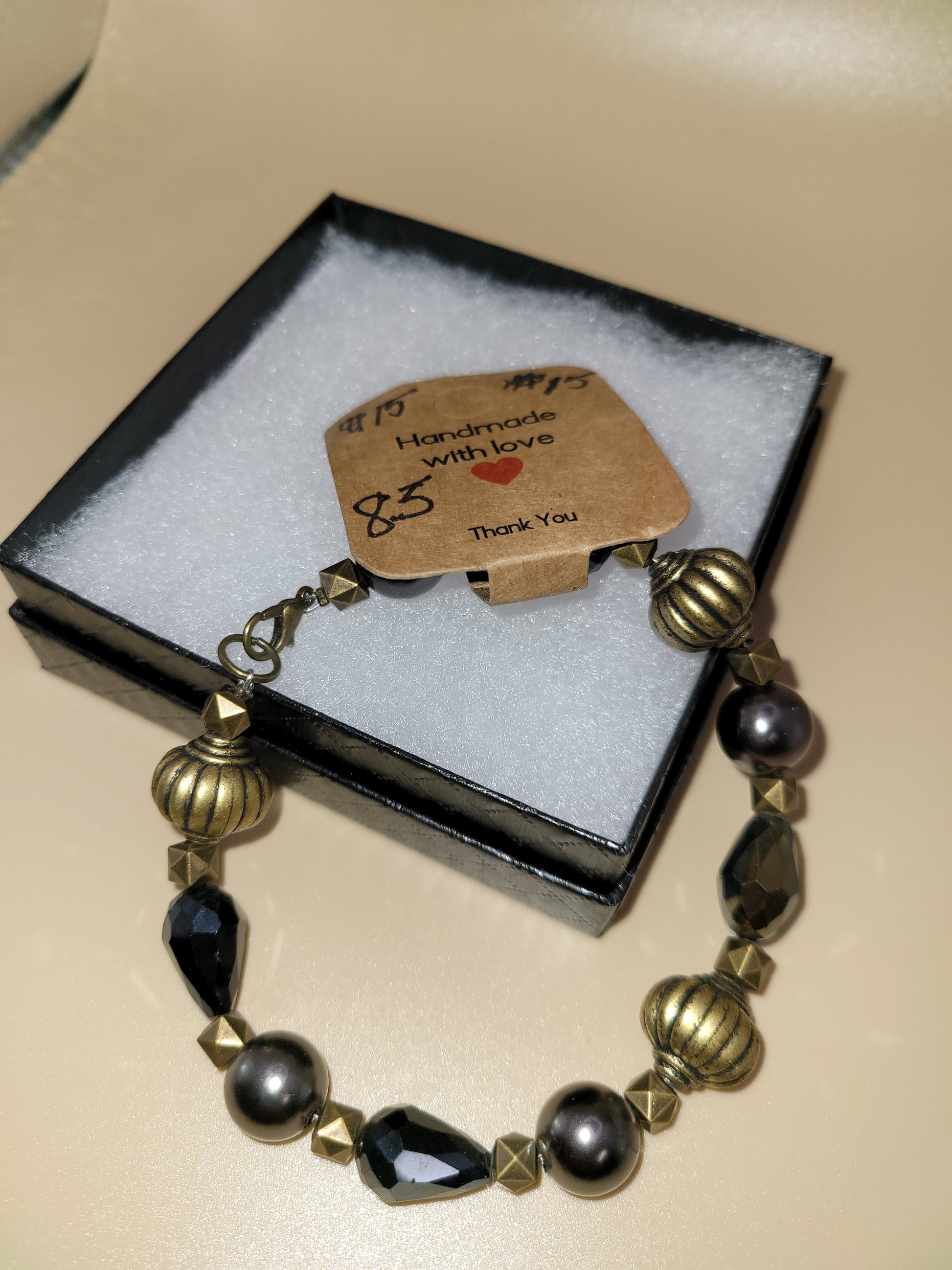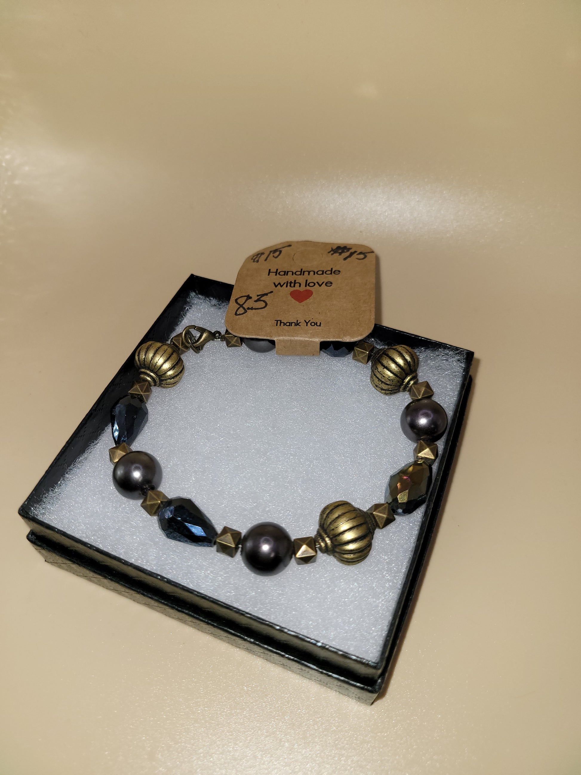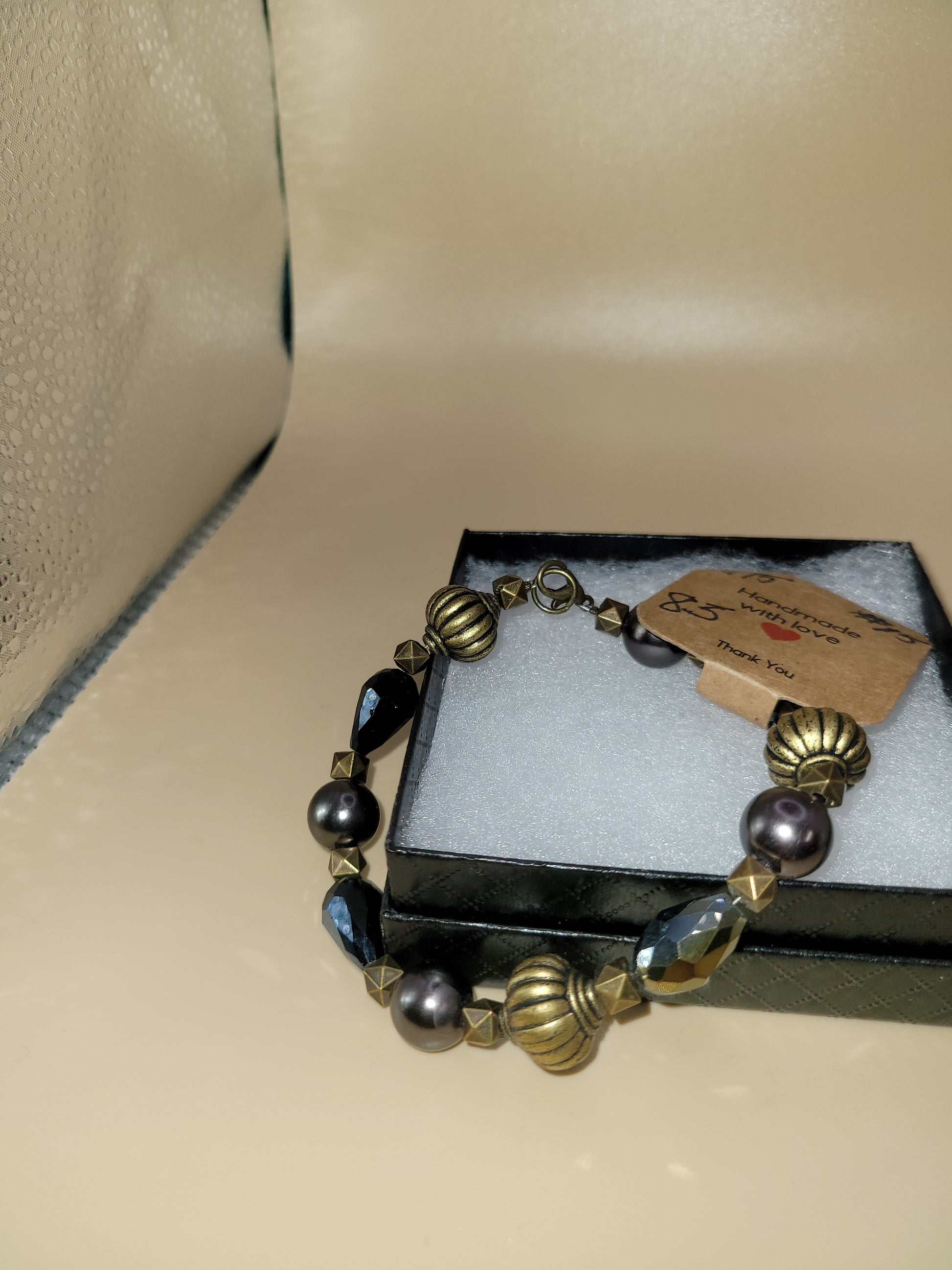 One of a kind 8.5 inches hand-crafted black and copper beaded bracelet with claw hook finishing.