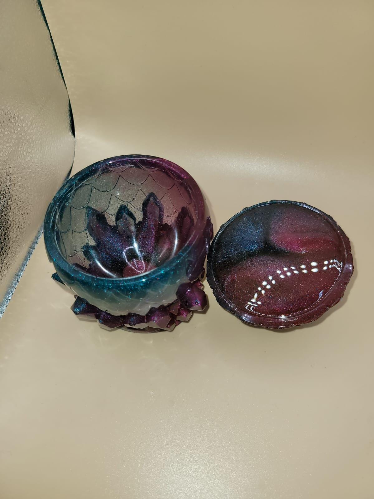 hand crafted Dinosaur egg in beautiful colors. great for storage or to just leave as decoration for the fantasy lover in you.
