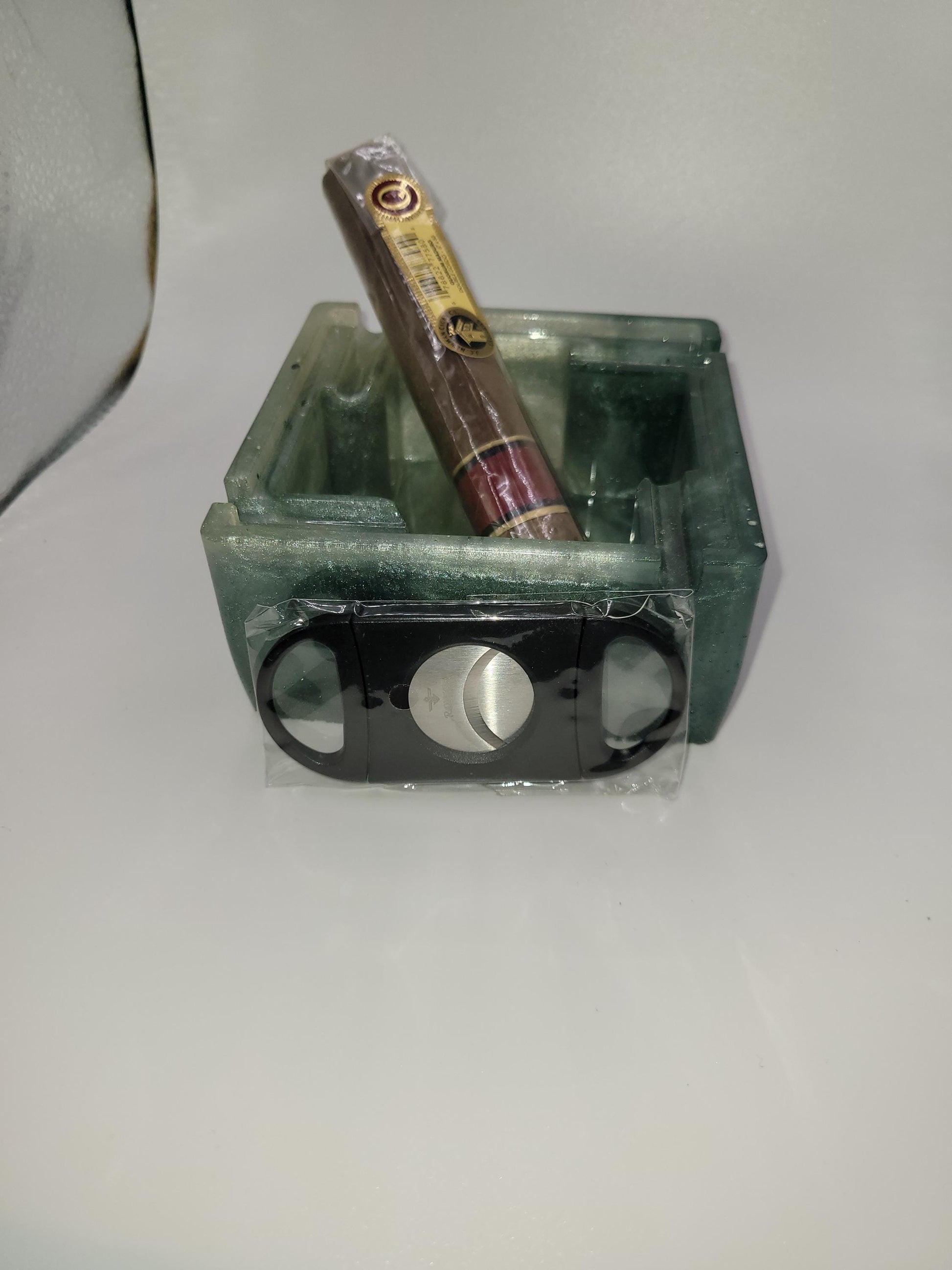 Hand crafted uniquely designed large cigar ashtray. Great for all occasions and the perfect gift for that person who loves enjoys all kinds of tobacco products. Ashtray is square and is 5.55 inches is width and length. Made with high quality resin and easy to clean with a damp rag.