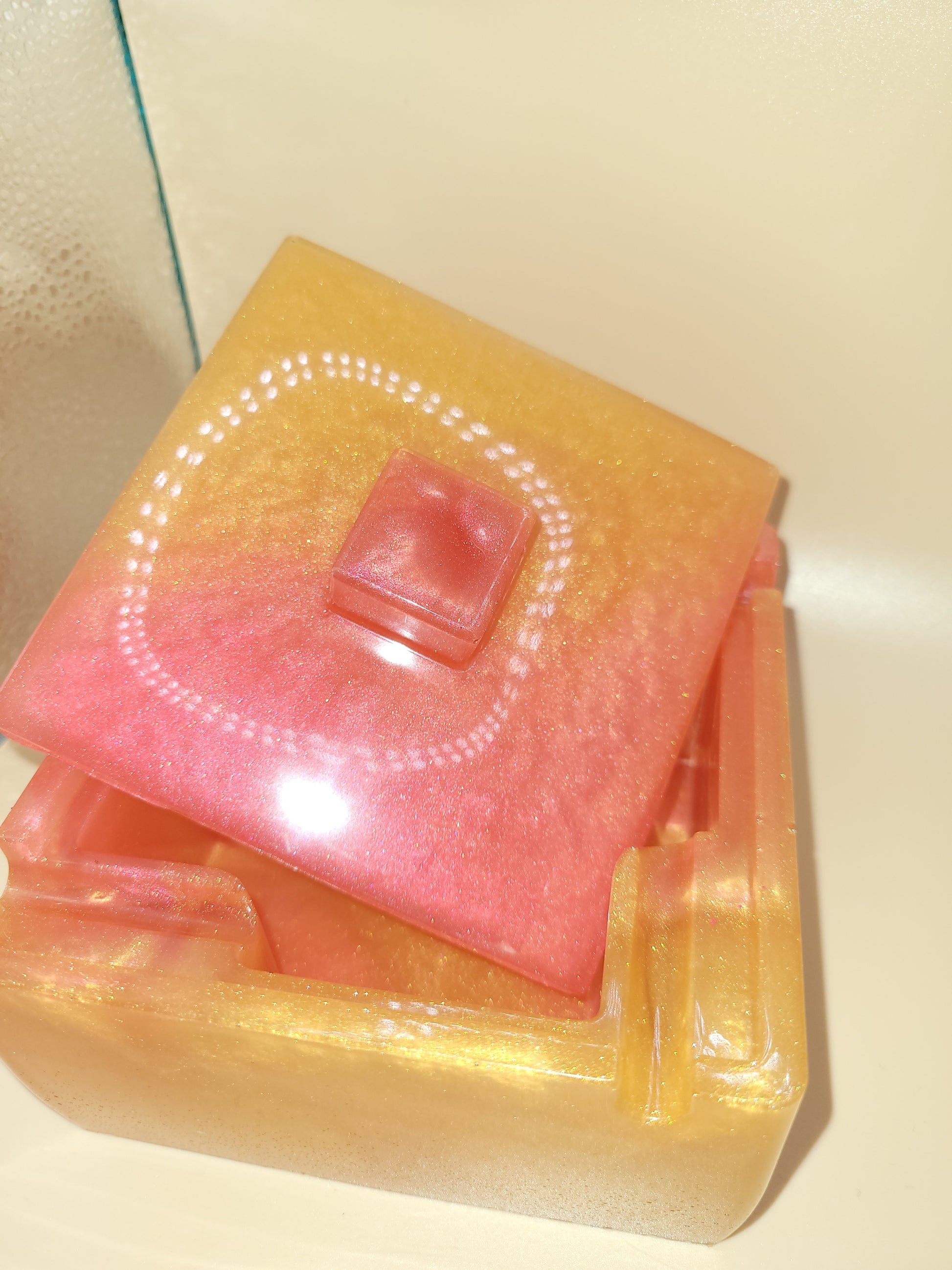 This hand crafted ashtray is an unique addition to any collection. Made with high quality resin, suitable for cigar smoking. Ashtray is 5.55 inches in length and width and comes with a decorative lid