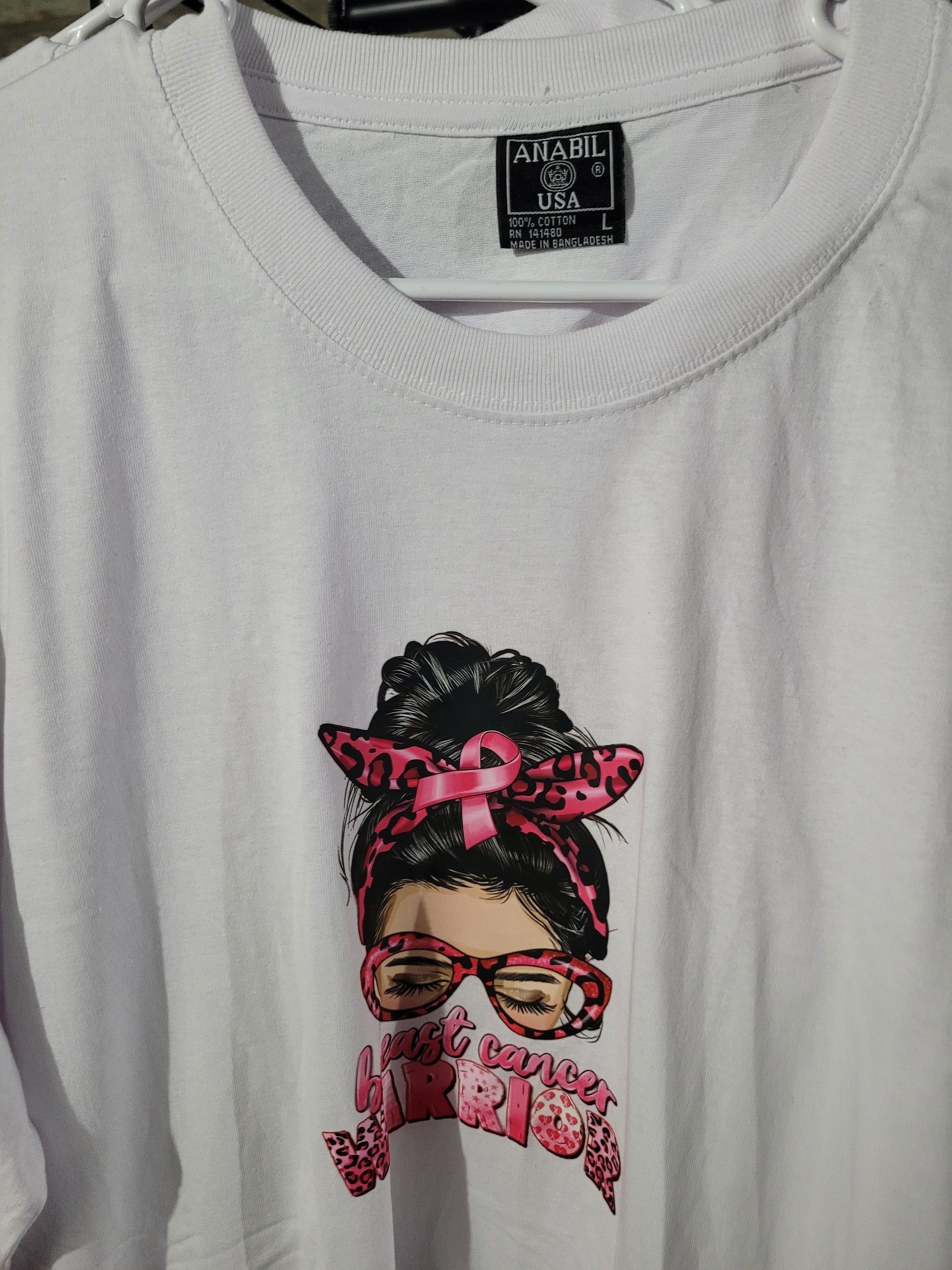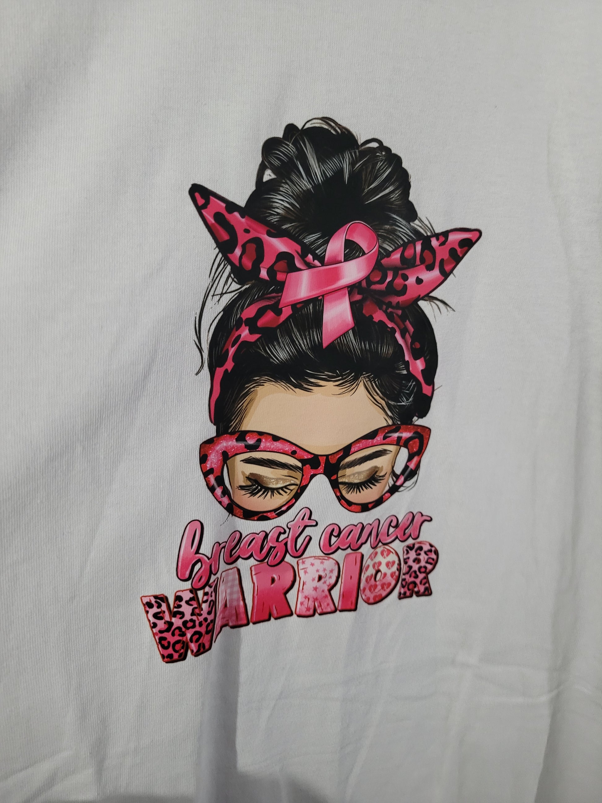Breast Cancer warrior, show your support with this large white long sleeve shirt